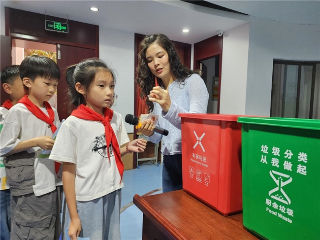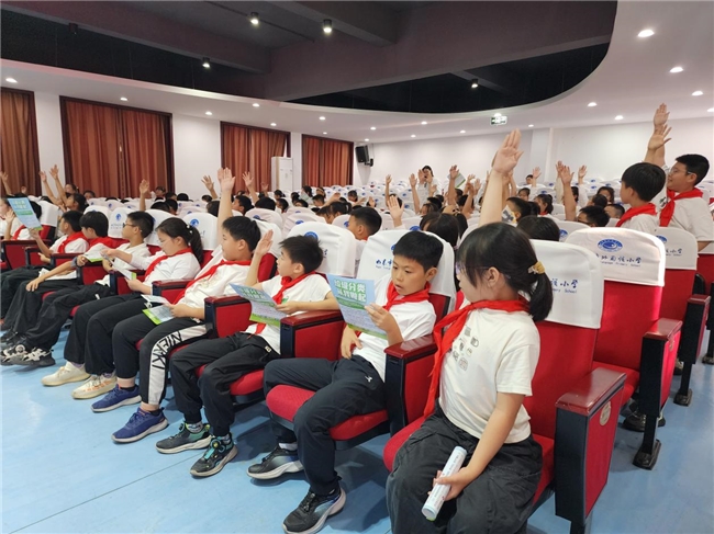 活动中,垃圾分类讲师通过贴近生活的实例,向同学们讲解了垃圾对环境的危害、垃圾分类的重要意义以及家庭分类的具体方法,引导孩子们从源头减少垃圾产生,积极践行绿色生活。同学们认真听讲、踊跃互动,在问答环节中积极举手发言,表现优异者还获得了“环保卫士”小勋章。